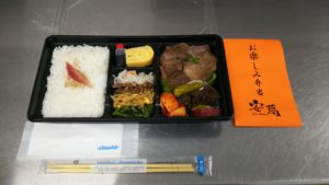 私がいただいたのはこちらのお弁当。「お楽しみお肉弁当」、お値段は税込みでちょうど1,000円!!